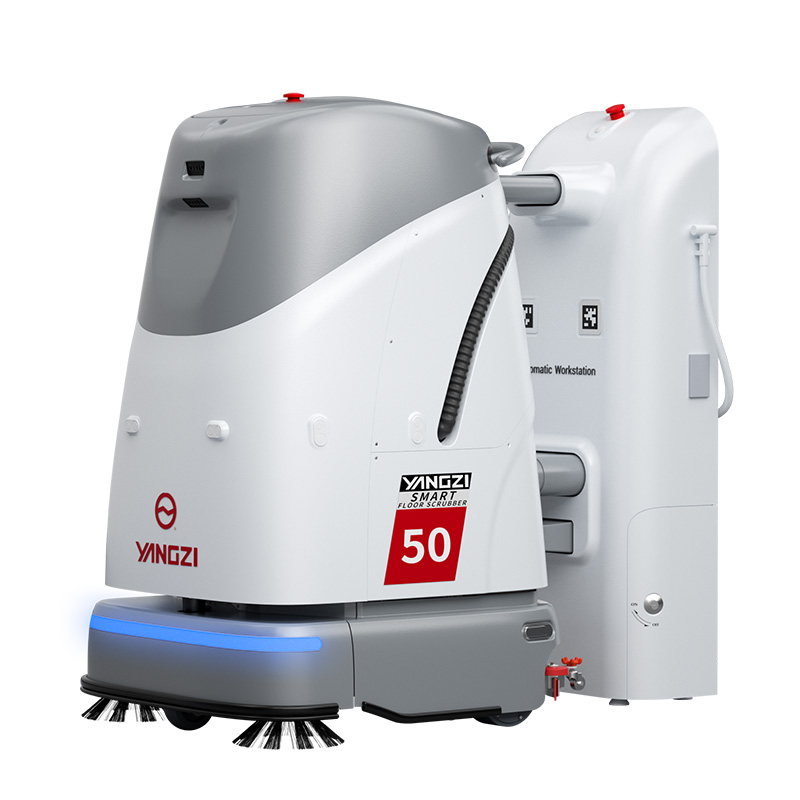 揚子YZ-SC50無人駕駛洗地機AI智能識別、全自動作業,洗地、塵推、掃地等多種功能可選,智能清潔可自動充電、排水、加水、避障等。